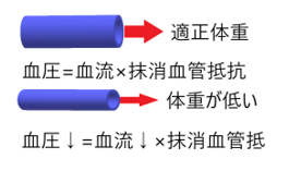 すると下肢の末梢血管が締まり(抵抗が上がる)、上半身への血流量が維持されることで、立ち眩みの症状が改善されます。次に「血流」とは、血管の中に流れている血液の量を言います。