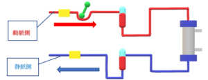 血液回路は大まかに動脈側・静脈側があります。