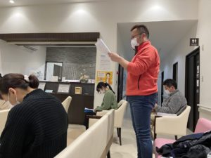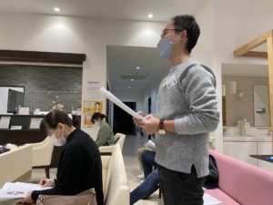 ロールプレイングも行いました。スタッフ自信が患者役となり、自分がサービスを受ける側になります。普段は気づかなかった学びが多くありました。