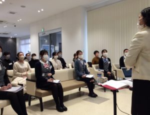 12月18日、外部のプロ講師の先生をお招きして、接遇コミュニケーション研修を受けました。日曜日に一日がかりでの研修ではありましたが、多くのスタッフが参加してくれました。一部ではありますが、研修内容の様子をご紹介したいと思います。