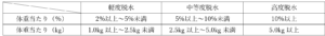 脱水の度合いは体液と電解質が失われることによる体重減少の割合により3段階に分かれます。