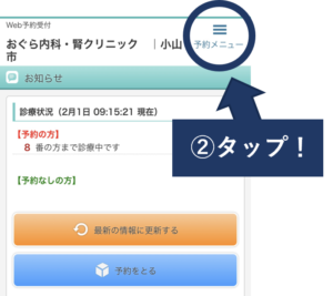 ①クリニックHPからドクターキューブ予約サイトへアクセス